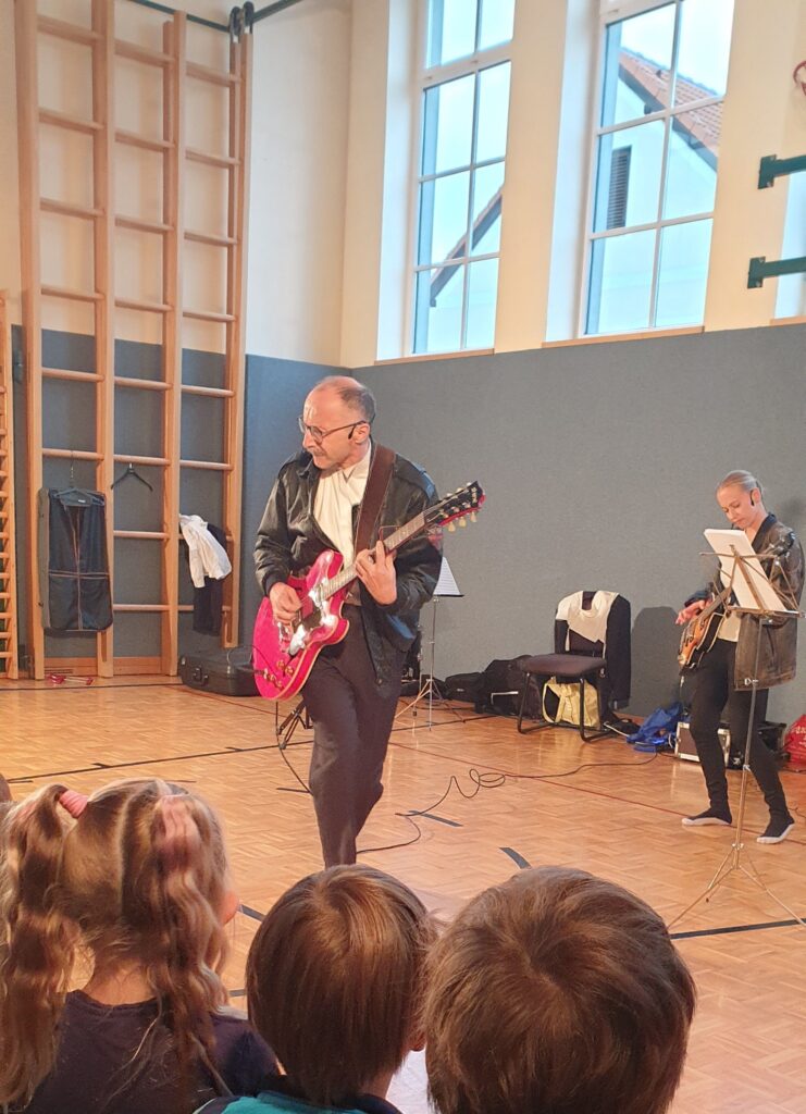 Die Musiker von Rock4Kids nahmen die SchülerInnen mit auf eine faszinierende Reise ins 19.Jahrhundert. Sie boten den SchülerInnen die Möglichkeit, zeitlose Werke wie den Radetzky-Marsch und Donauwalzer nicht nur zu hören, sondern auch aktiv mitzusingen, zu tanzen und spannende Geschichten über das Leben der Familie Strauß zu hören.
