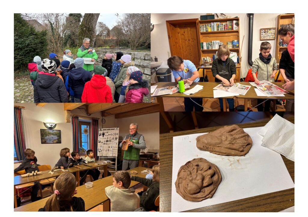 Gerne nimmt die VS Hainburg als Nationalparkschule das vielfältige Angebot an Workshops im Nationalpark an. Im Dezember besuchte die 3c mit Klassenvorstand Petra David das Nationalparkhaus in Petronell und verbrachte einen Vormittag mit den RangerInnen zum Thema Tierspuren. Die kleine Forscherschar entdeckte Fährten von Schalenwild (Wildschwein, Rotwild,..), Raubwild und Federwild. Unter der Anleitung der RangerInnen sicherten die Kinder die Spuren und stellten Abdrücke her.